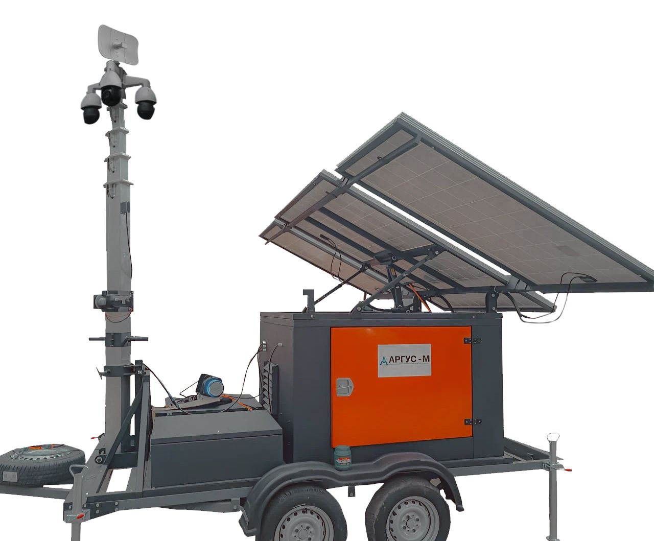 Гибридная автономная мобильная система видеонаблюдения с видеокамерой, солнечными панелями и дизельгенератором «Аргус Страж» optimal